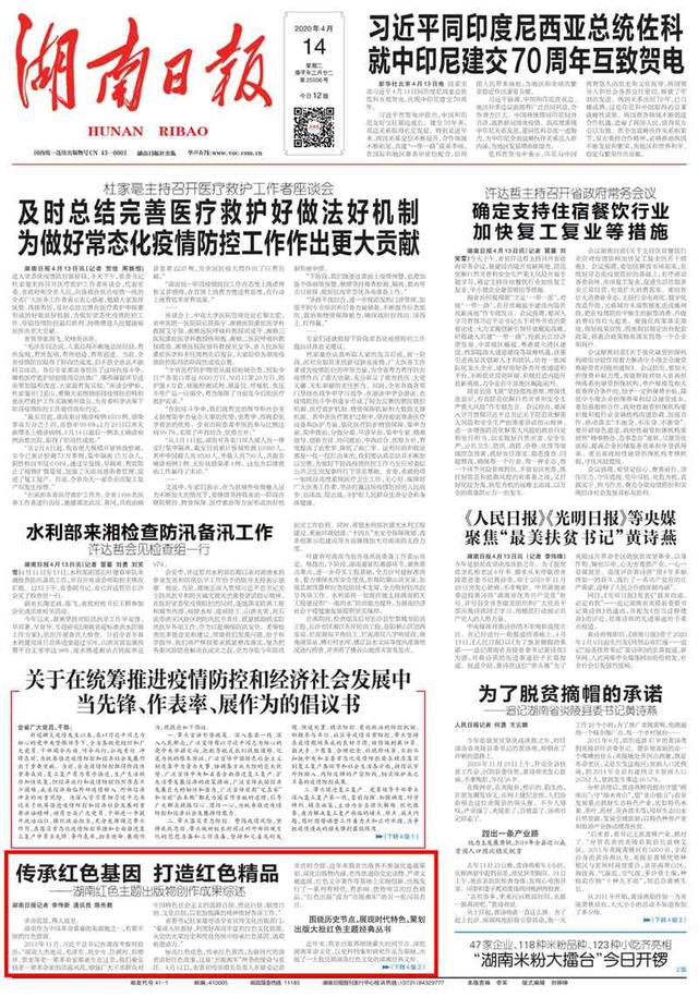 原載于《湖南日?qǐng)?bào)》2020年4月14日01版