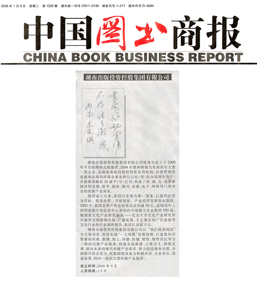 湖南出版投資控股集團(tuán)有限公司——榮登《中國(guó)圖書(shū)商報(bào)》第1222期
